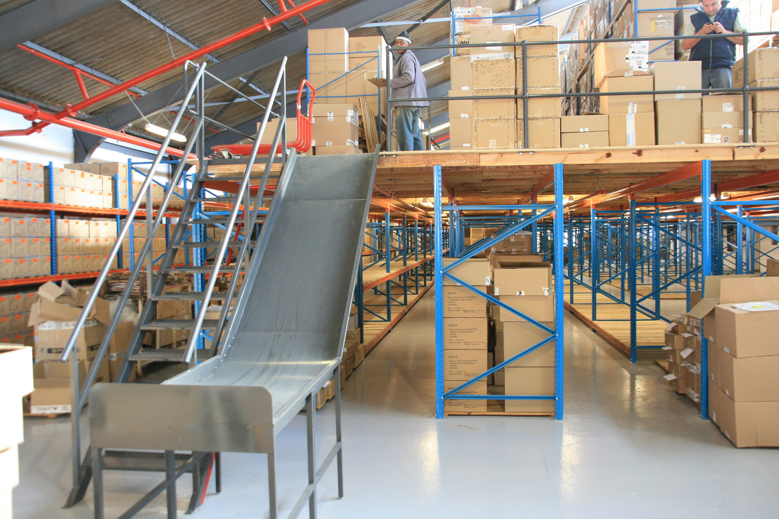 Making use of available height, mezzanine floors create additional storage or working areas.